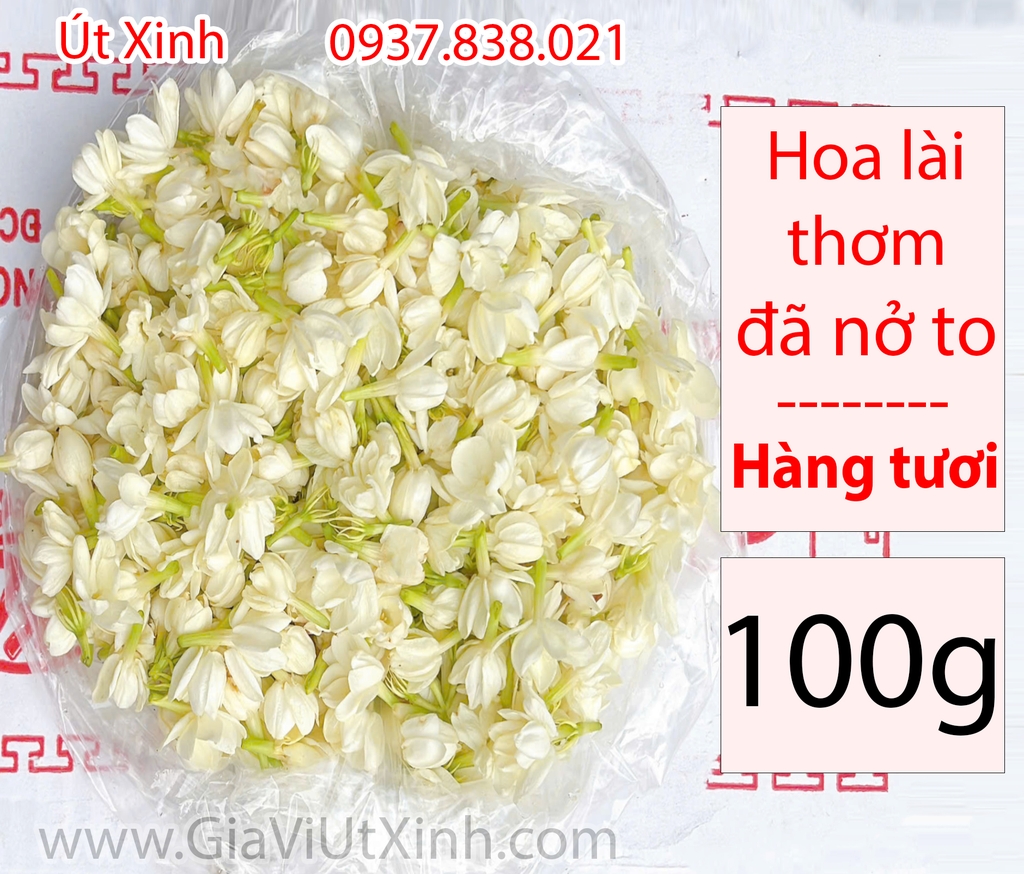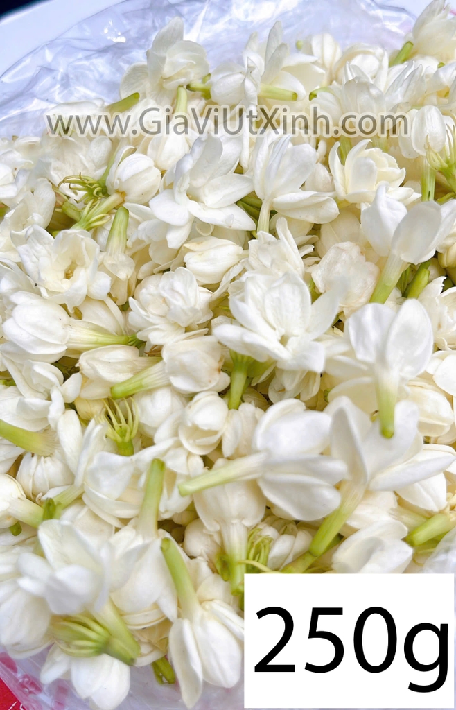 Bông hoa lài tươi (hoa nhài) là nguyên liệu quen thuộc trong ẩm thực và đời sống, nổi bật với mùi thơm tự nhiên, dịu nhẹ nhưng rất sâu và lâu tan. Sản phẩm tại Gia Vị Út Xinh là hoa đã nở to, nở bung đều, giúp hương thơm lan tỏa mạnh hơn so với hoa còn búp.