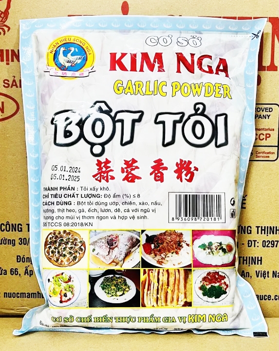Bột tỏi Kim Nga 500g là gia vị tiện lợi không thể thiếu trong gian bếp, giúp tăng hương thơm tự nhiên và vị đậm đà cho món ăn. Sản phẩm được làm từ tỏi nguyên chất, sấy khô và xay mịn, giữ được mùi thơm đặc trưng, không lẫn tạp chất.