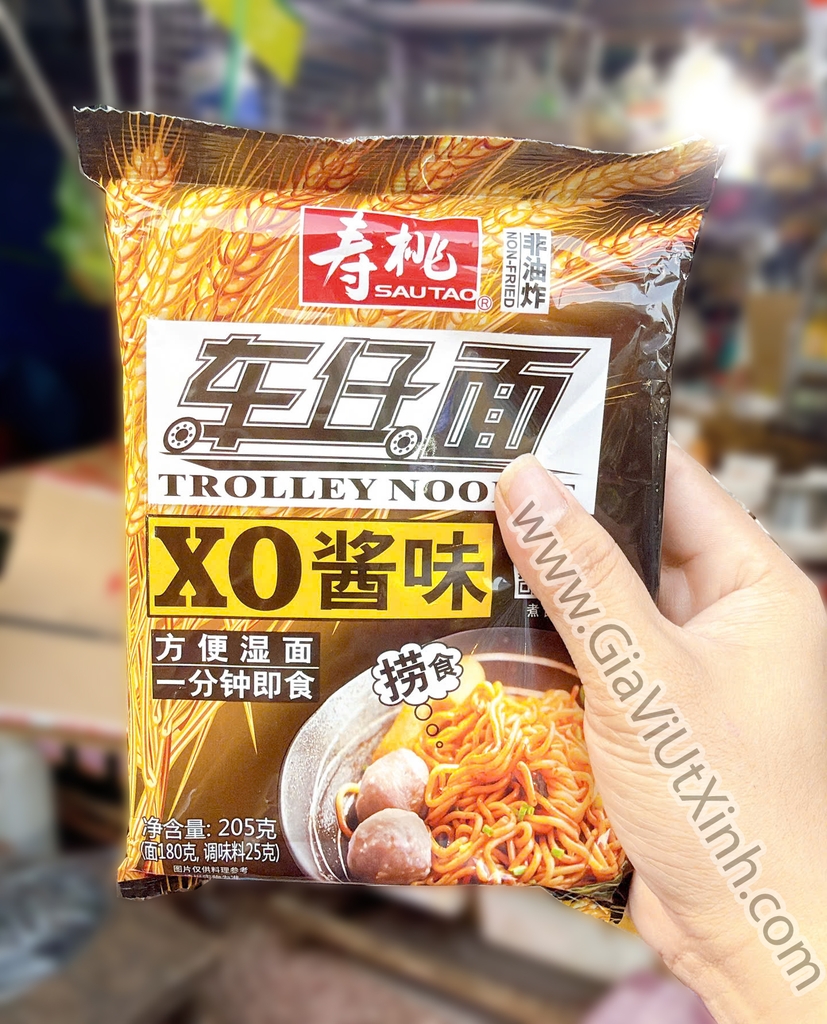 Mì xe đẩy sốt XO Hong Kong Sau Tao là dòng mì cao cấp nổi tiếng với sợi mì tươi không chiên, giữ được độ dai ngon tự nhiên, không bị khô cứng như mì chiên thông thường. Kết hợp với gói sốt XO đậm đà, thơm mùi hải sản đặc trưng, mang đến hương vị chuẩn Hong Kong ngay tại nhà.