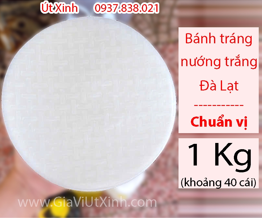 - Bánh tráng nướng trắng Đà Lạt 1kg, loại vỏ dày truyền thống, nướng không bị gãy bể, không mùi chua, không hôi dầu, không bụi. Sản phẩm chuyên dùng làm bánh tráng nướng mắm ruốc, trứng, pate hoặc biến tấu thành pizza Đà Lạt, bánh tráng nướng kiểu Hàn, kiểu Nhật.