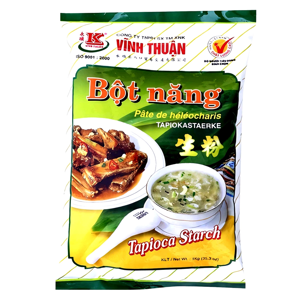 - Bột năng Vĩnh Thuận được chế biến từ khoai mì nguyên chất.