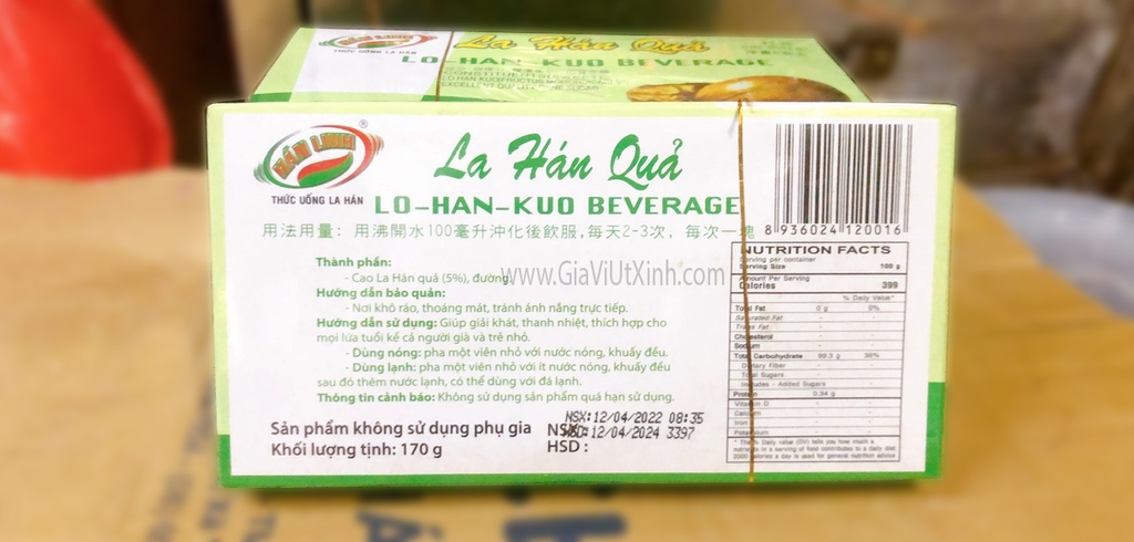 HỘP LA HÁN QUẢ HÁN LINH 170G - LO-HAN-KUO BEVERAGE