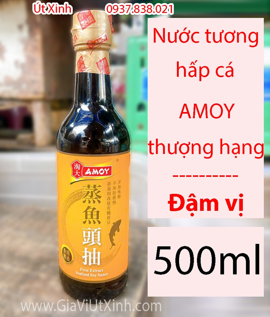 Nước tương hấp cá AMOY thượng hạng 500ml là lựa chọn hàng đầu cho các món cá hấp chuẩn vị Hoa. Sản phẩm được chiết xuất từ đậu nành nguyên chất bằng phương pháp lên men tự nhiên, mang đến hương vị đậm đà, thanh ngọt, tôn lên vị ngon tự nhiên của hải sản. Đây là loại nước tương cao cấp (First Extract) – tinh chất đầu tiên trong quá trình ủ ủ men, giúp món ăn thêm tròn vị, thơm dịu, không gắt mặn.