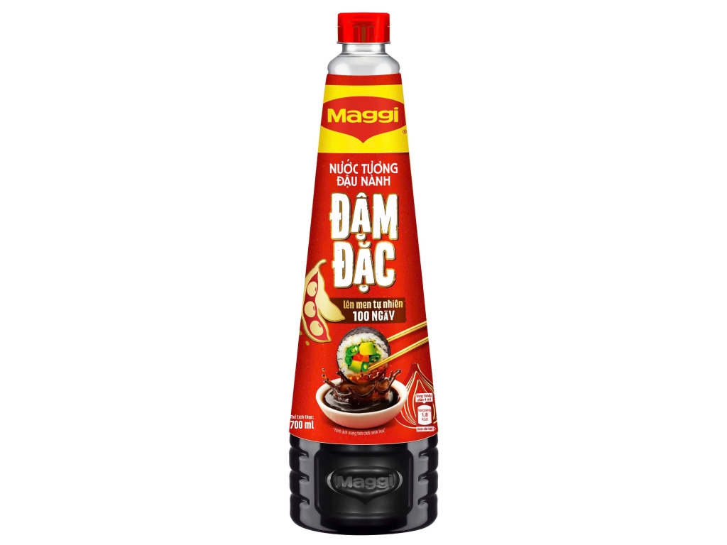 Nước tương Maggi đậu nành đậm đặc được lên men tự nhiên 100% từ những hạt đậu nành cao cấp. Tinh chất đậu nành đậm đặc, bổ sung I-ốt, đảm bảo dinh dưỡng trong từng giọt nước tương.